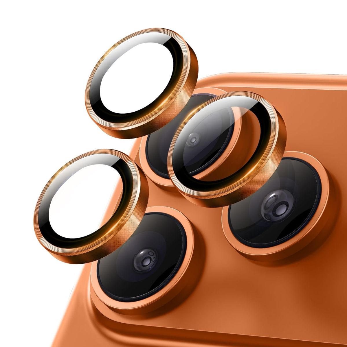 Folie protecție cameră pentru iPhone 17 Pro/17 Pro Max, sticlă 9H, Aluminiu, Portocaliu Engros