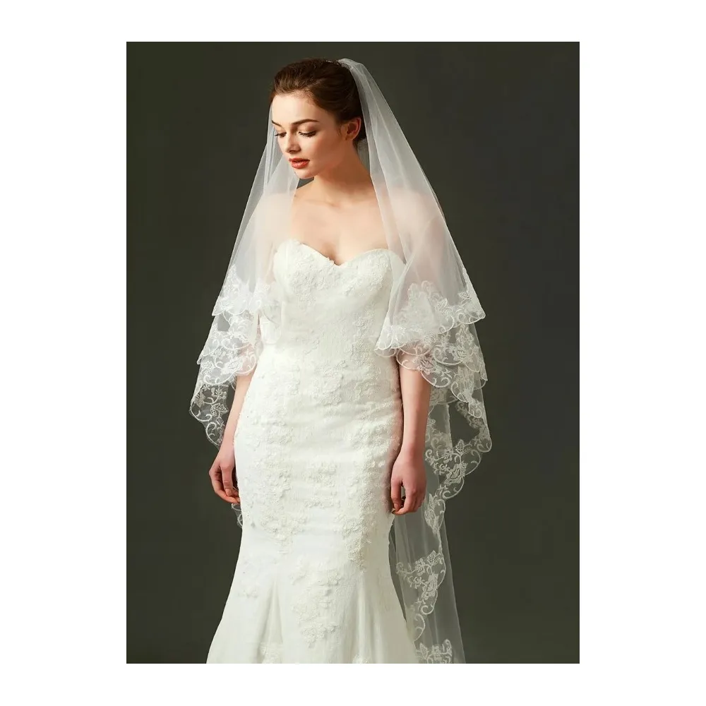 Voal Mireasa Lung Decorat cu Dantela, 280cm, Alb - 89829