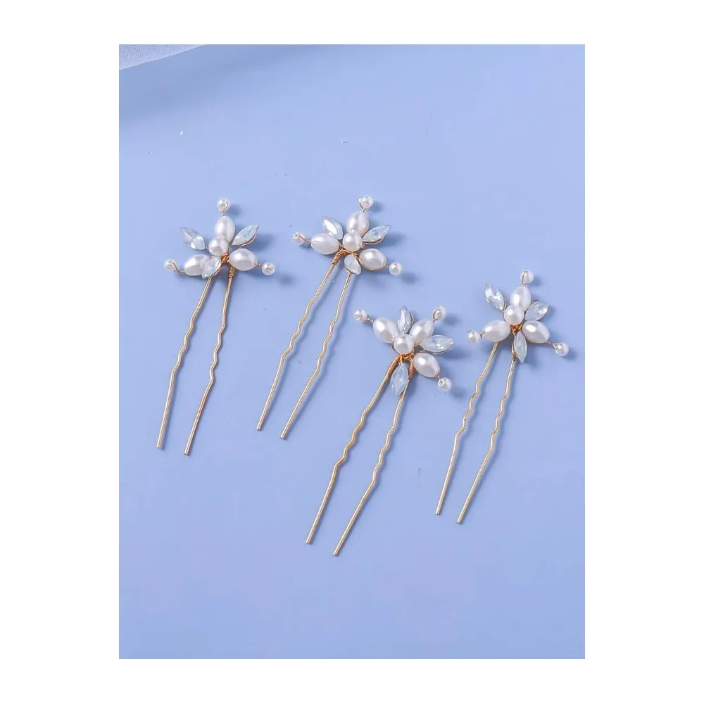 Ace Par Mireasa cu Perle 4 BUC ,3 x 8 cm,Aurii- 28851