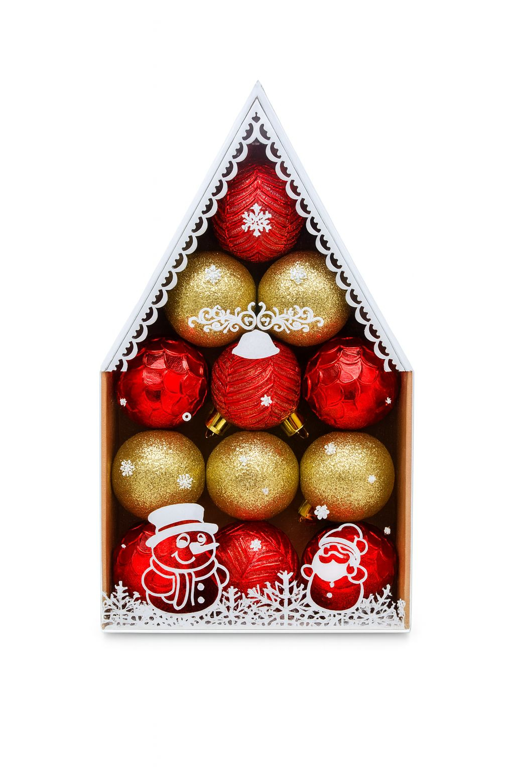 Set globuri brad Craciun rosu si auriu 12 buc diferite modele, 19.5x11.5cm