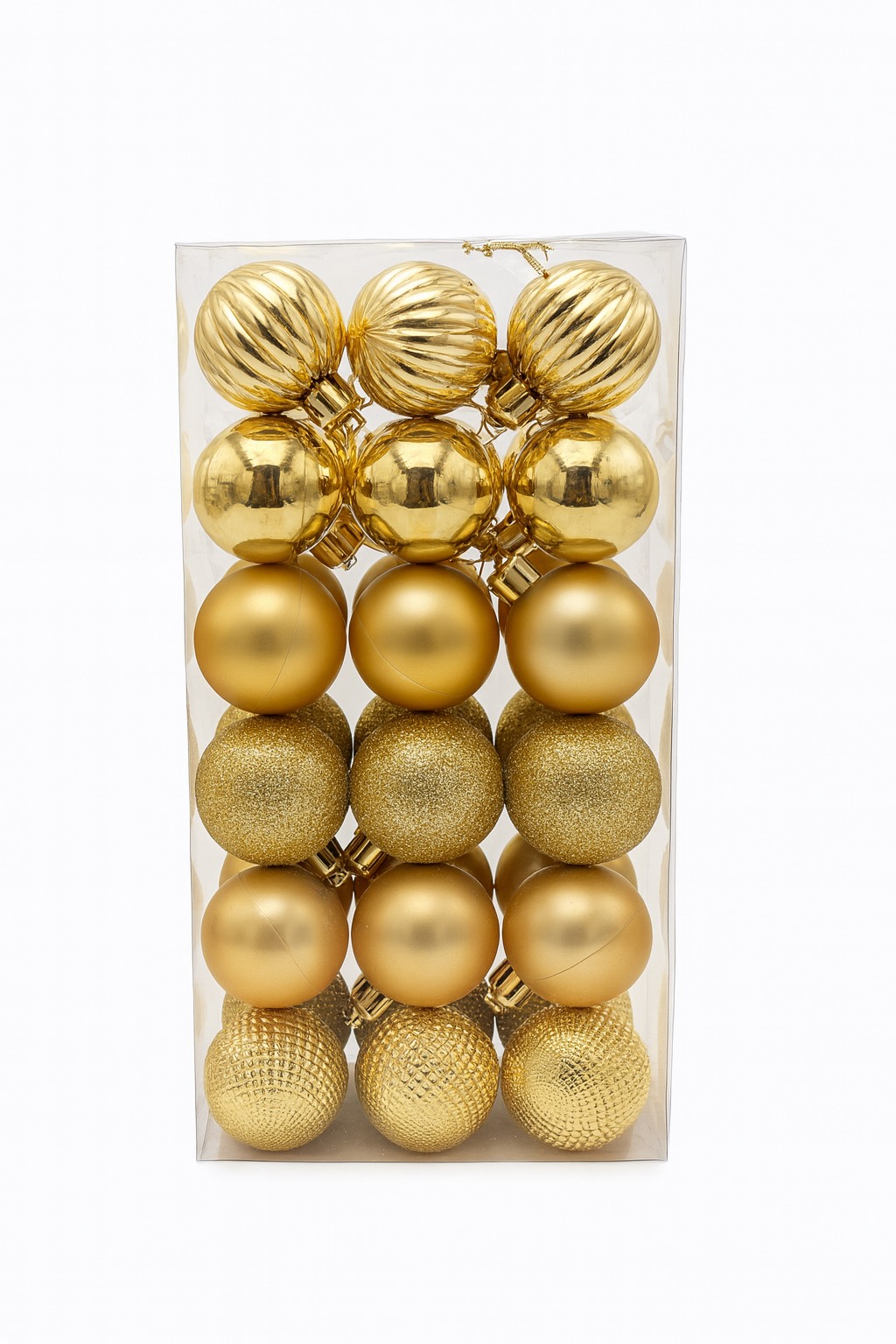 Set 36 Globuri Craciun Mici Auriu - Diverse Modele, Decor Elegant pentru Brad