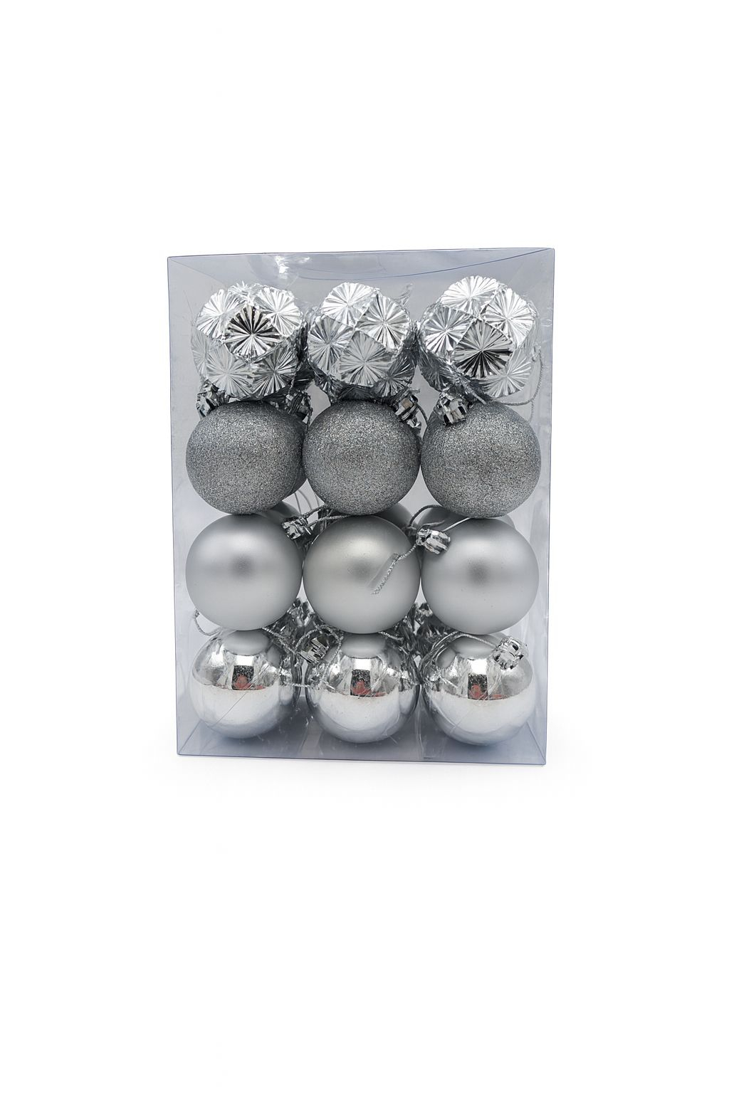 Set globuri argintii pentru brad, 24 buc, modele combinate, 23x17x12cm