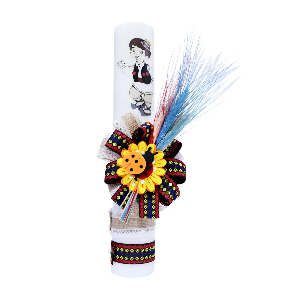 Lumanare Traditionala de Botez cu Spice de Grau si Panglica cu Motive Traditionale - LB05