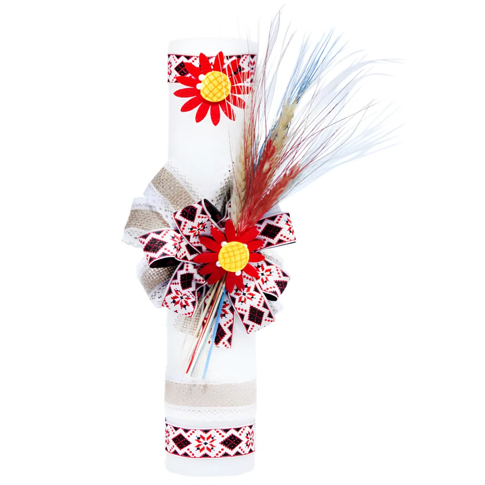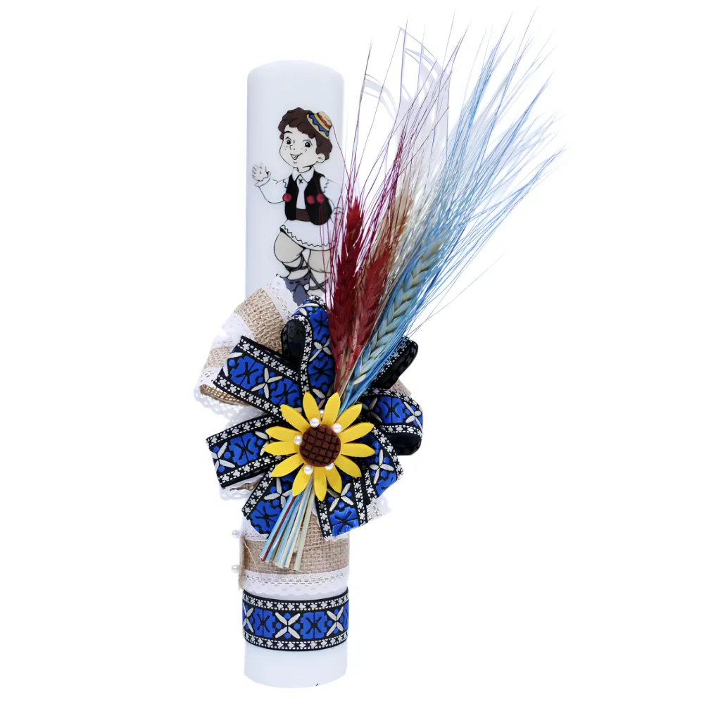 Lumanare Traditionala de Botez cu Spice de Grau si Panglica cu Motive Traditionale - LB01