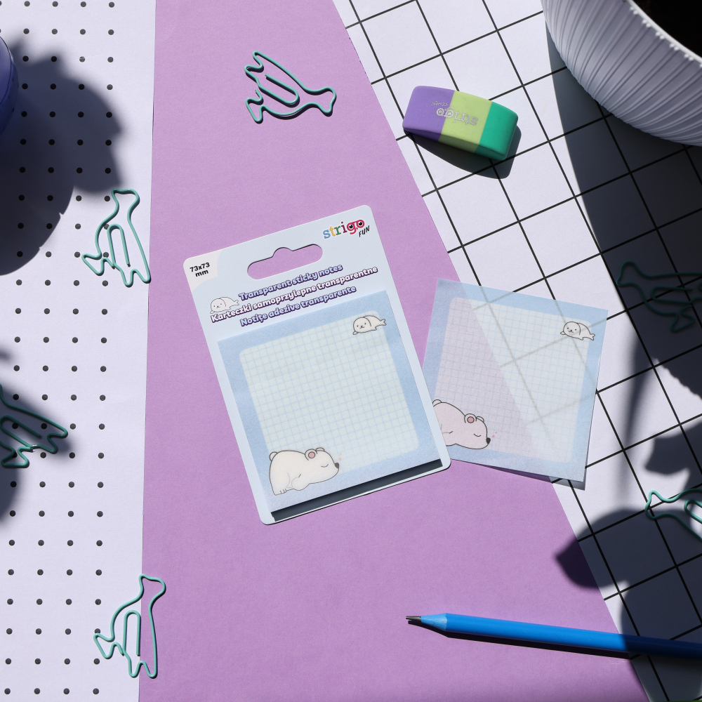 Notite adezive transparente 73A 73 mm, 50 file, Strigo albastru pastel