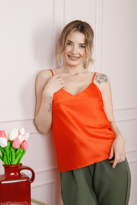 Pantaloni casual orange piersica cu talie elastica si buzunare functionale