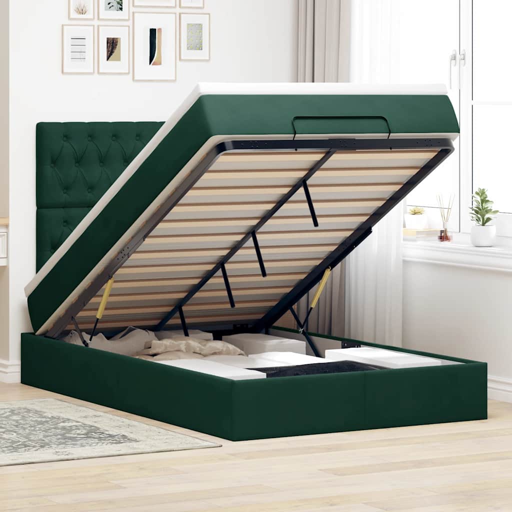 vidaXL Cadru de pat otoman cu saltele Verde închis 160x200cm catifea