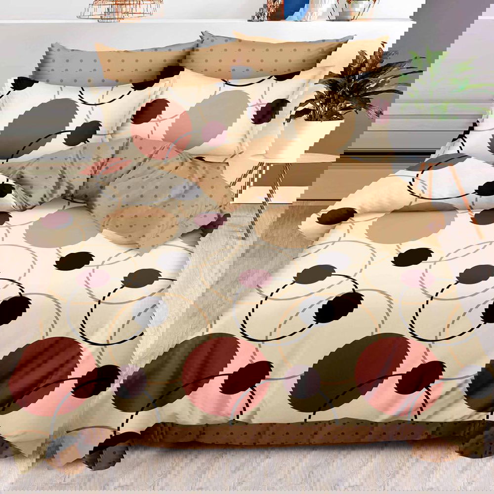 Lenjerie de Pat din Finet cu Elastic 6 Piese - 160/180x200 de Pucioasa - Crem cu Cercuri - LFEN_D125