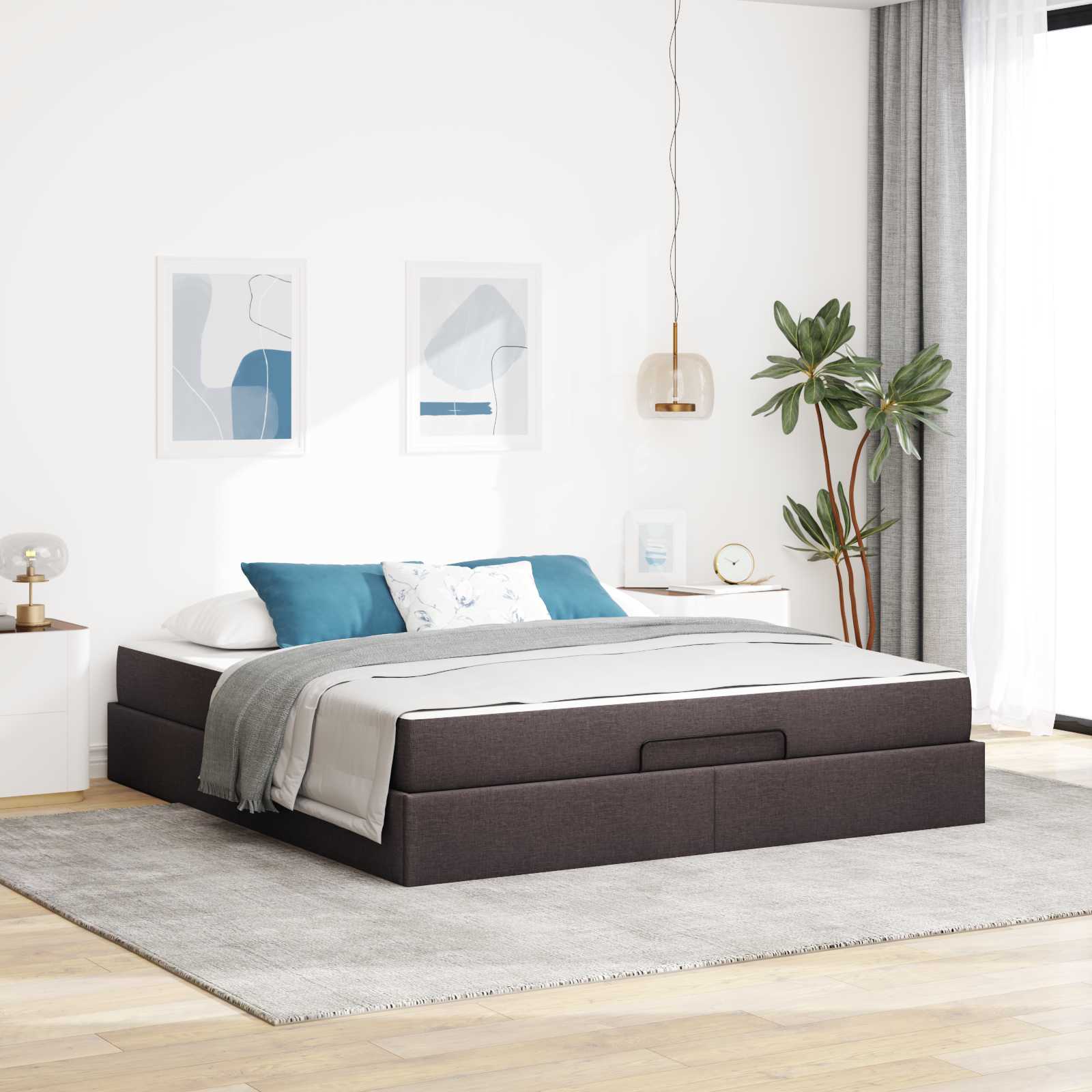 vidaXL Cadru de pat cu saltea cu saltea 2 pcs Cafeniu țesătură