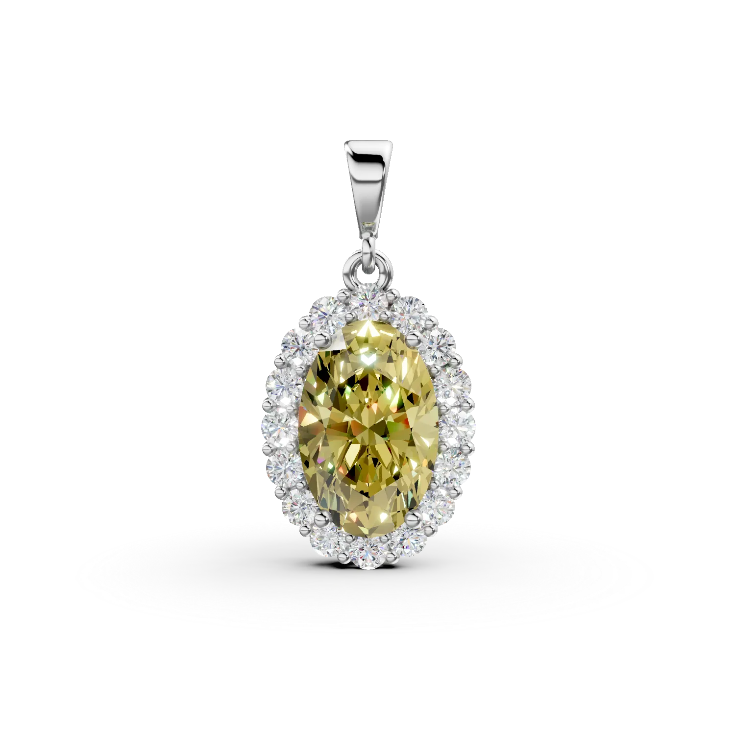 Pandantiv oval din aur alb cu zirconii