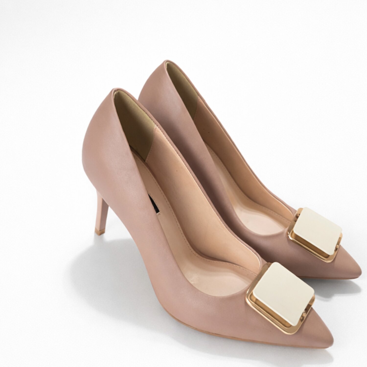 Pantofi stiletto Piele Naturala Bej cu accesoriu Emilly
