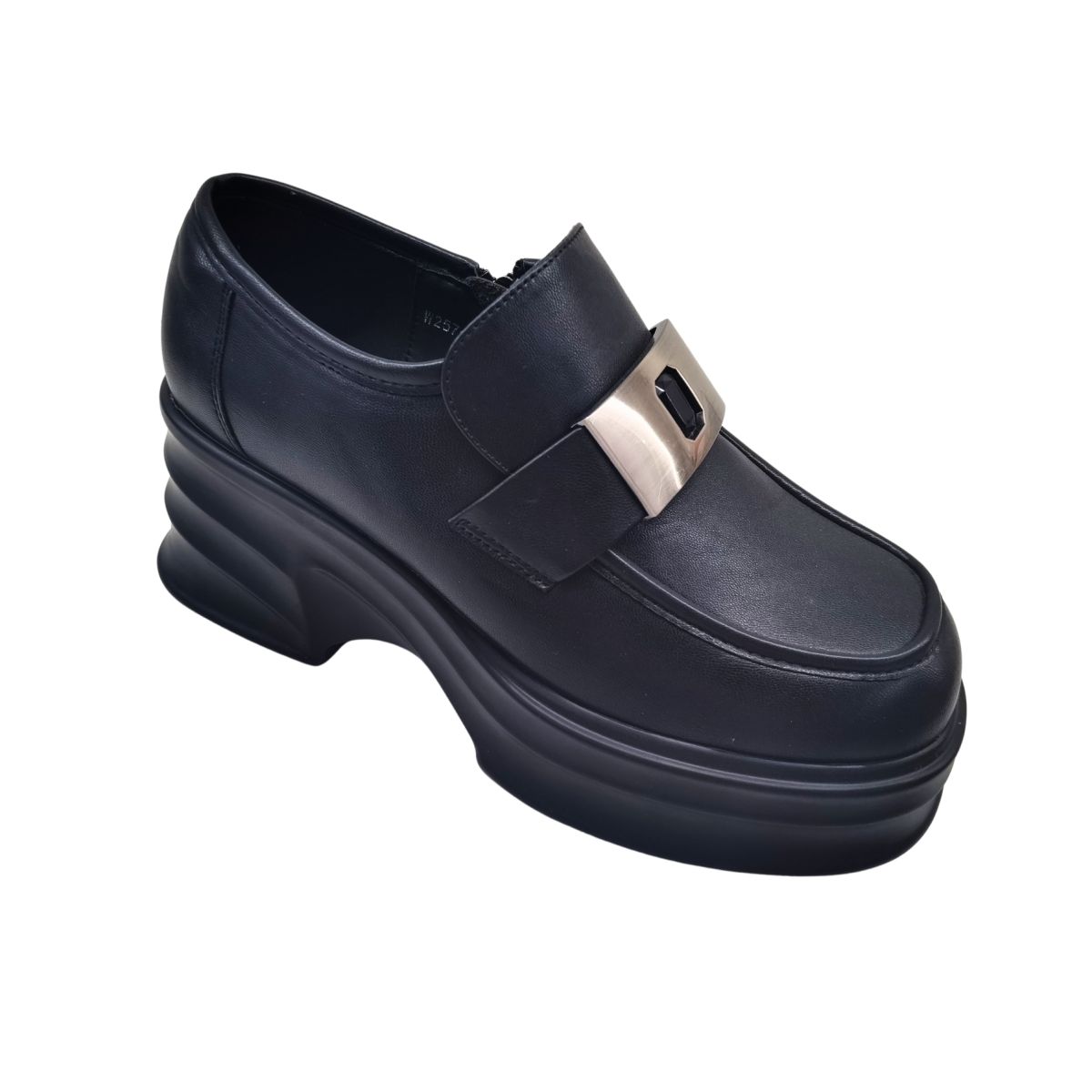 Pantofi Casual Elegant, Talpa Inalta, Inchidere SIret+Fermoar, Piele ecologica, Engross, Marimi 36-40, 8buc/bax negru
