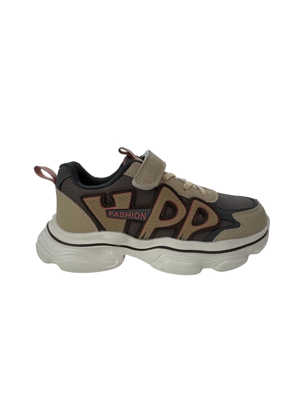 Pantofi sport copii , Talpa Flexibila, Inchidere Siret si Arici , Piele ecologica si textil, Engross, Marimi 32-37, 8buc/Bax, Maro/crem