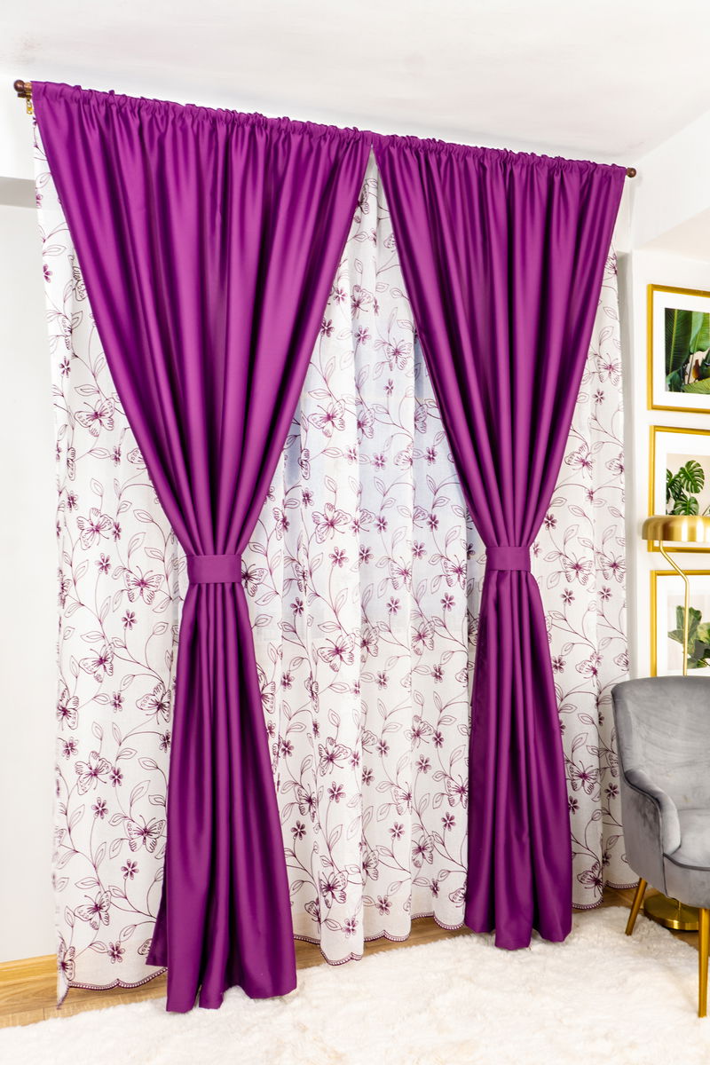 Set Adana - Perdea din In Paradis Mov si Draperie Blackout Mov Royal