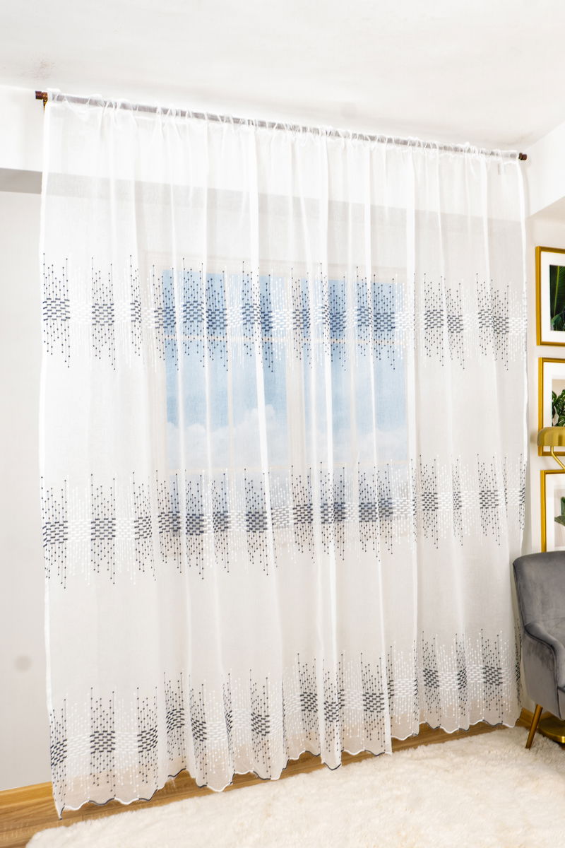 Perdea din In Lauri Gri cu Alb - PERD093D_PLC