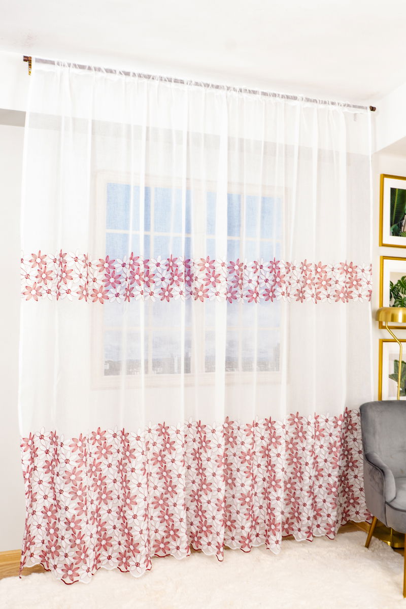 Perdea din In Zambet Roz cu Alb - PERD045B_PLC