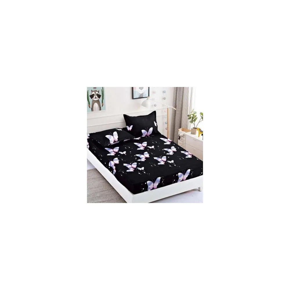 Husa de Pat + 2 Fete de Perna din Finet 180x200cm - JO807 Negru cu Fluturi