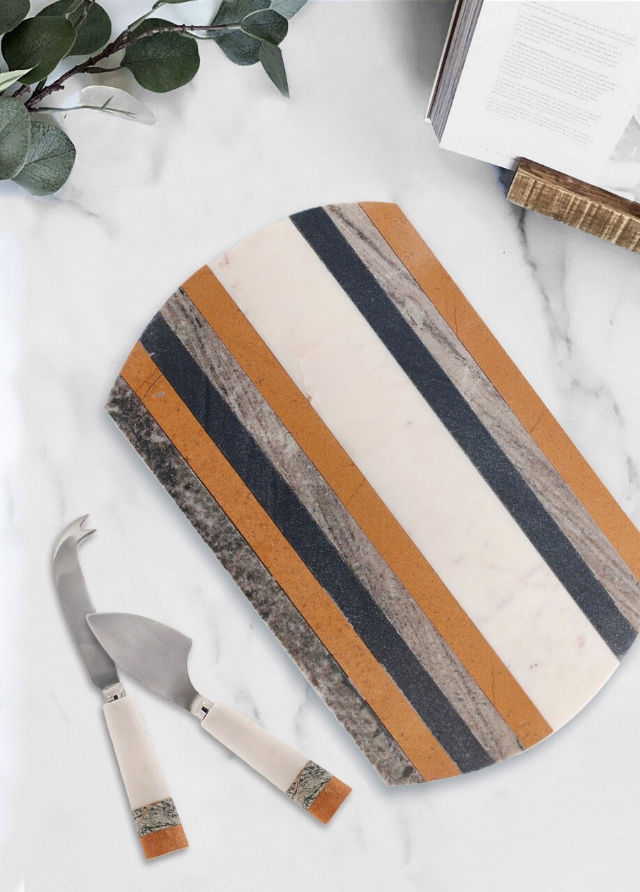 Platou servire cu 4 cutite Rumi, Homla, 32x32 cm, bambus/inox, natur