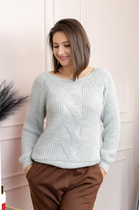 Pulover gros Sydney din tricot moale cu model impletit - Gri