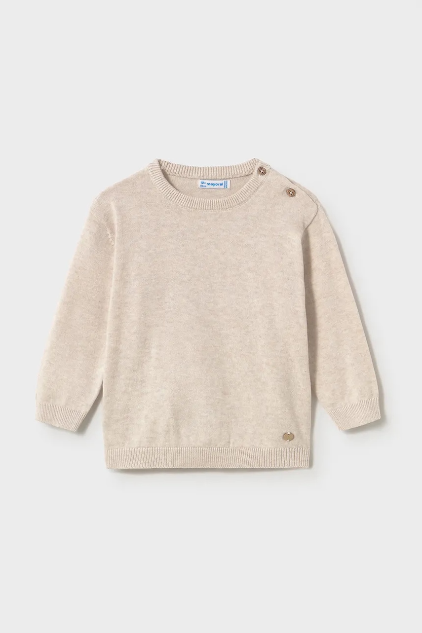 Pulover de bumbac cu decolteu la baza gatului, Maro deschis