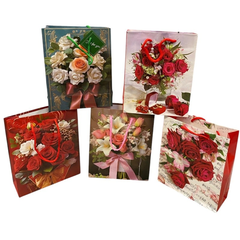 Pungi de Cadou 12/set Diferite Modele Florale 18x22x7cm Cartonate Engros