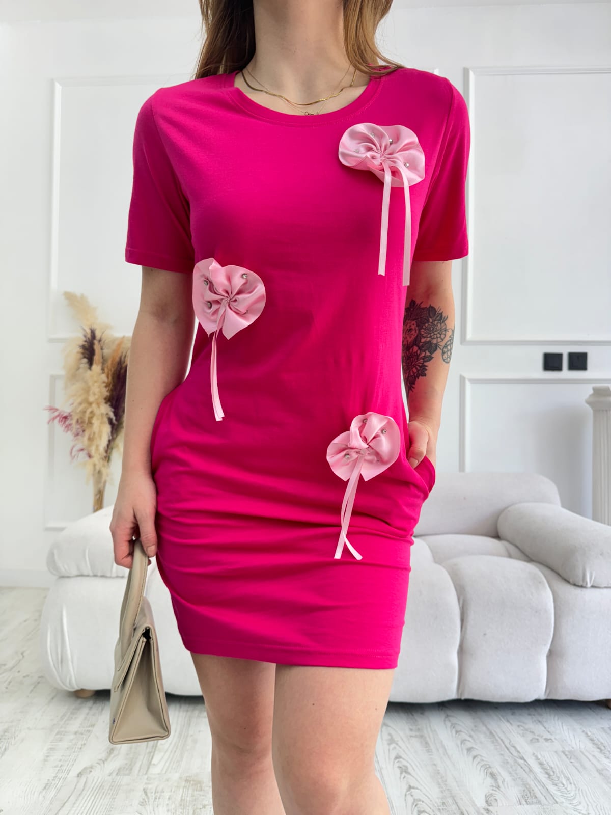 Rezultate Căutare: Rochie midi tip tricou, cu flori 3D si buzunare,fucsia