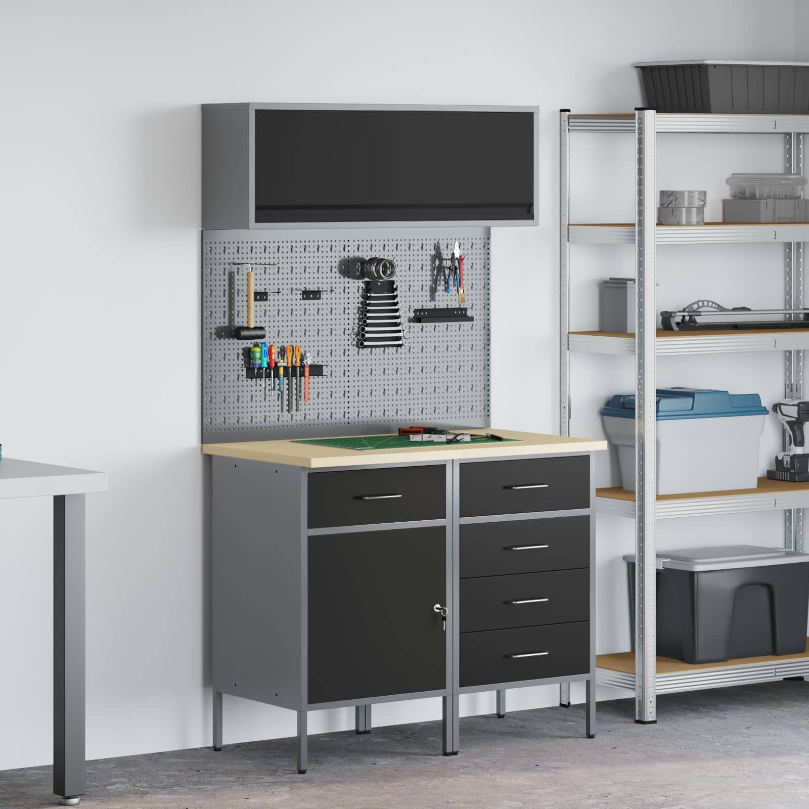 vidaXL Set banc de lucru 3 pcs Negru și Gri Oțel vopsit electrostatic