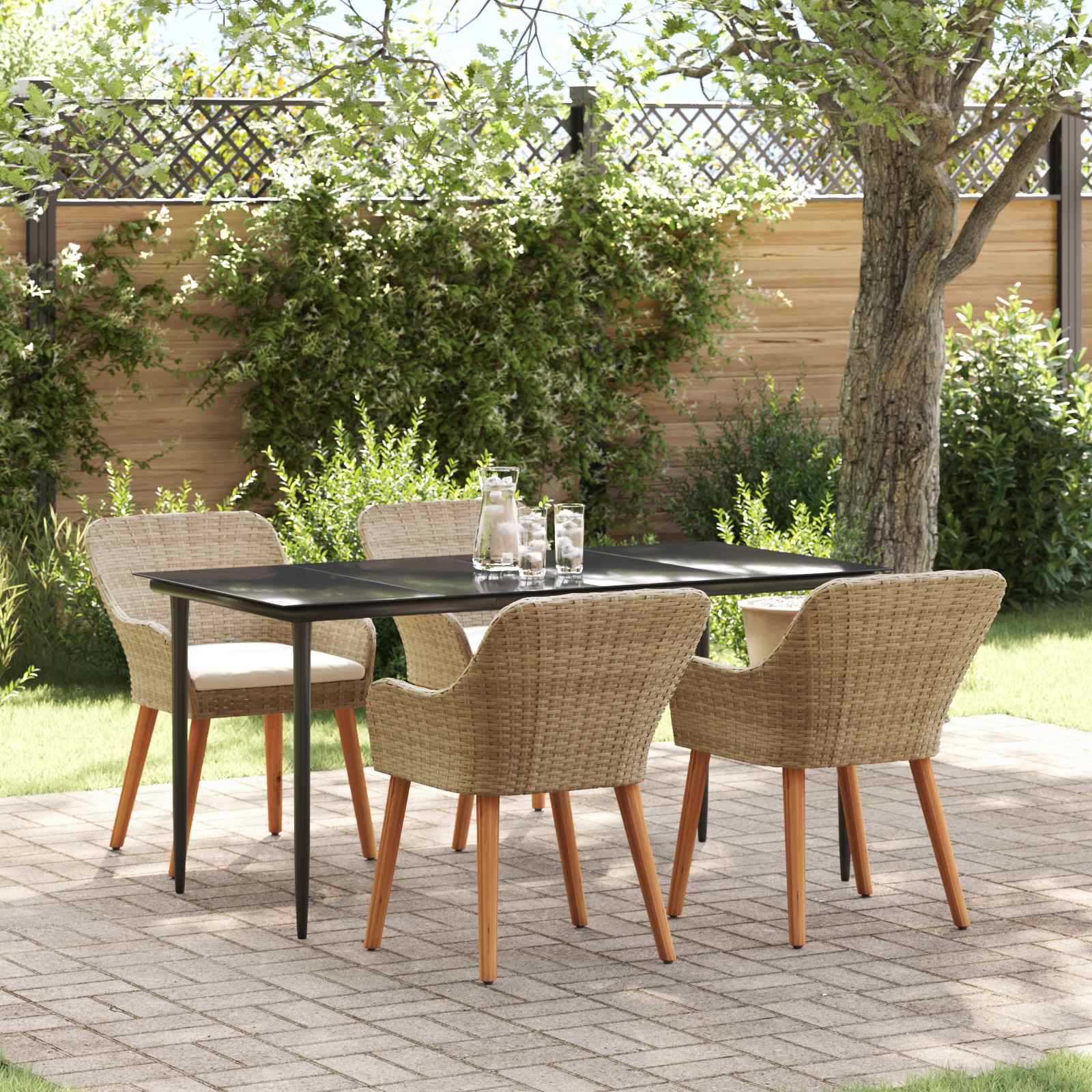 vidaXL Set de masă pentru grădină cu pernă 5 pcs Bej Rattan poli