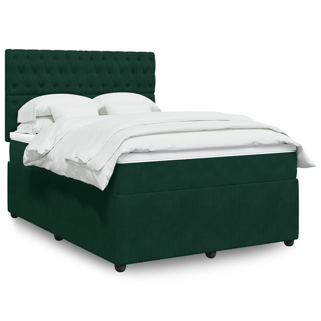 vidaXL Pat box spring cu saltea, verde închis, 140x200 cm, catifea