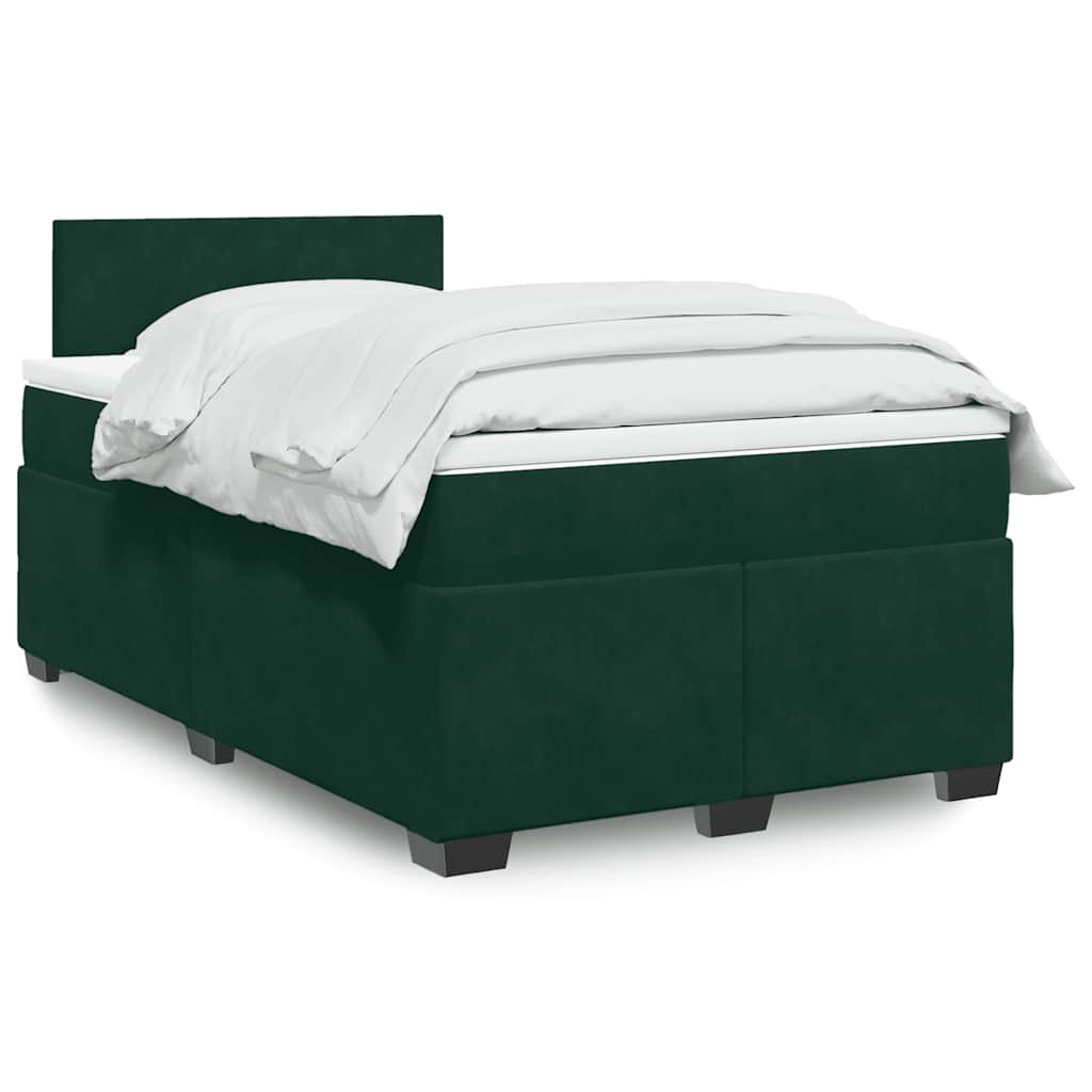vidaXL Pat box spring cu saltea, verde închis, 120x200 cm, catifea