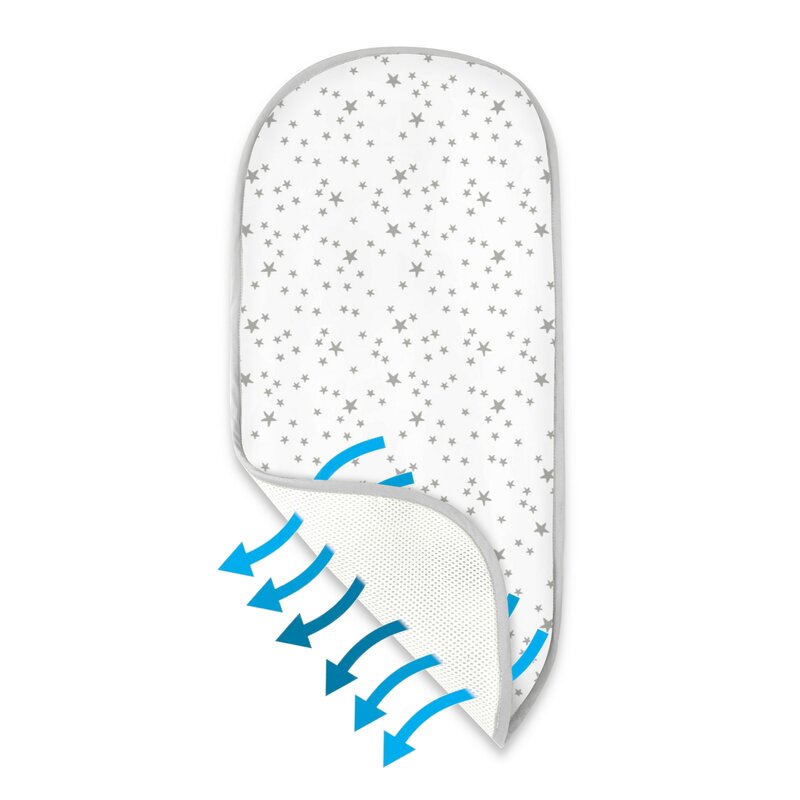 Insertie landou anti-transpiratie, MimiNu, Din plasa 3D, Materiale certificate Oeko Tex Standard 100, Mini Gray Stars