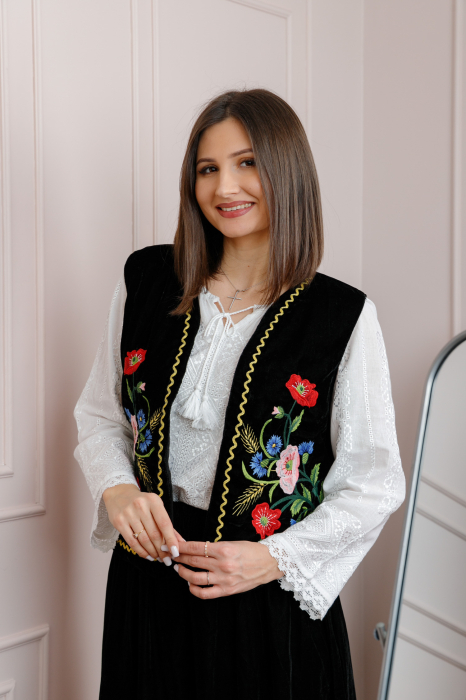 Vesta nationala Margareta din catifea cu broderie florala aurie