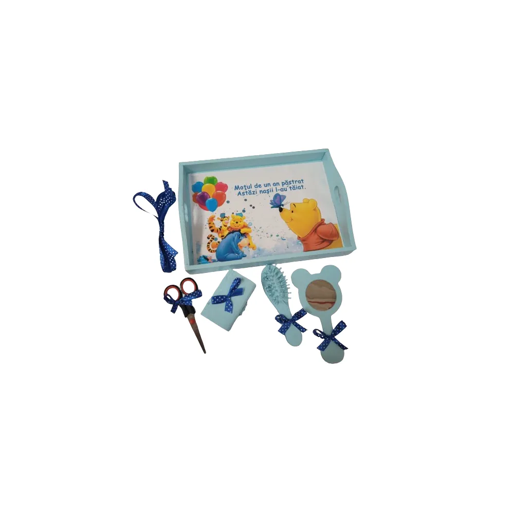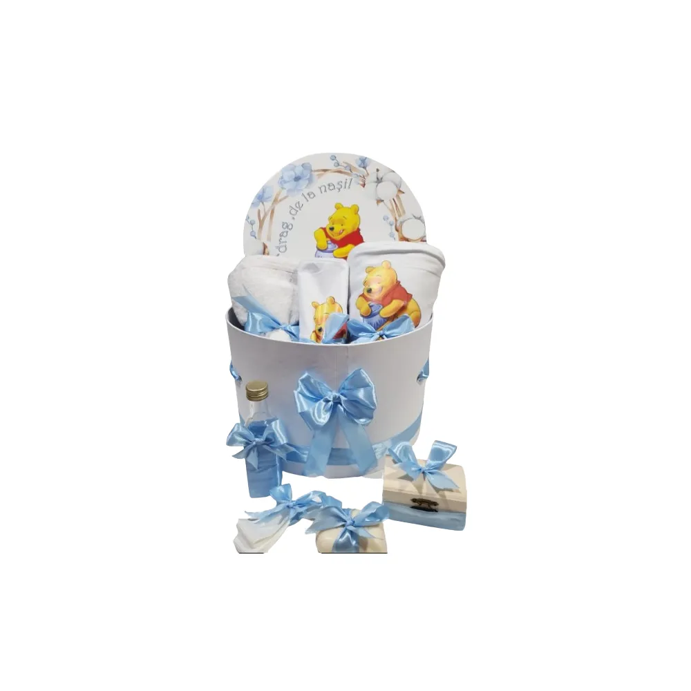 Trusou Botez, 6 Piese cu Text Imprimat Cu drag de la nasi, Albastru, Winnie the Pooh - TB142