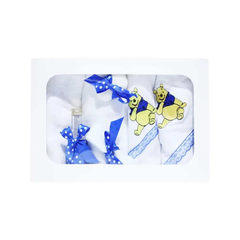 Trusou Botez cu 7 piese - Winnie-the-Pooh brodat - ALB -ALBASTRU -TB73