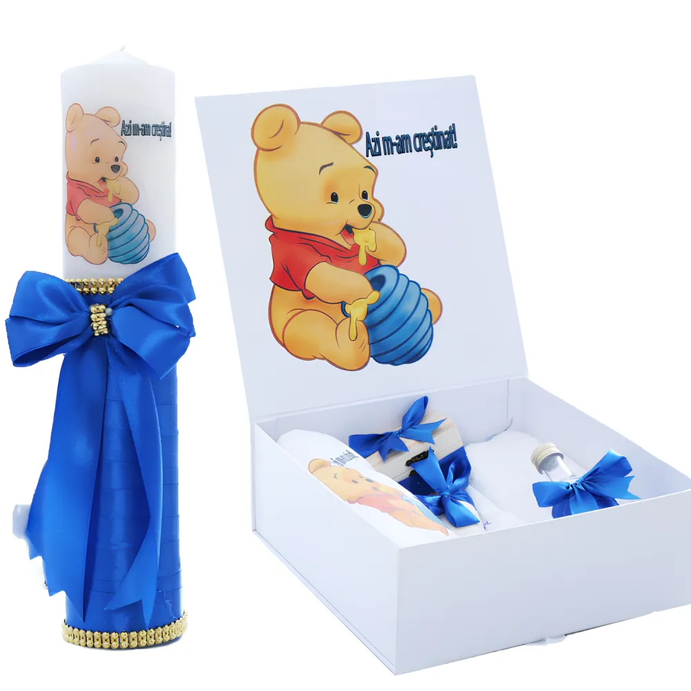Set Cutie Trusou cu Lumanare, 9 Piese, Azi m-am crestinat, Albastru, Winnie The Pooh- TB186