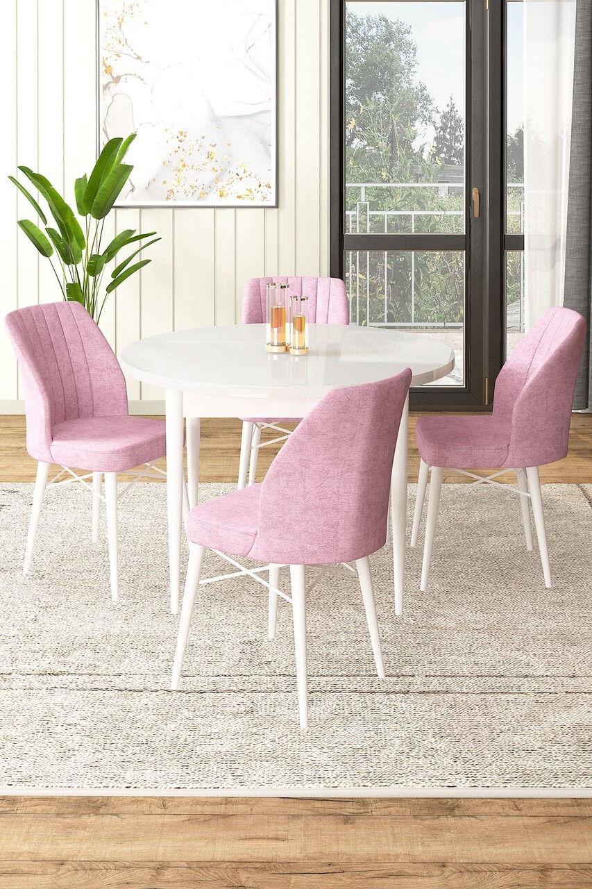 Set masă și scaune (5 bucăți), Hanah Home, Rox, Alb/Roz