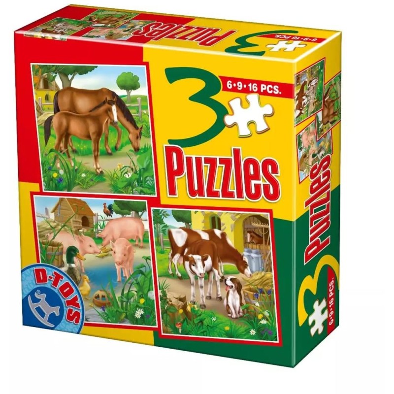 Colectie 3 Puzzle Copii, 6, 9, 16 Piese, Animale Domestice Mari