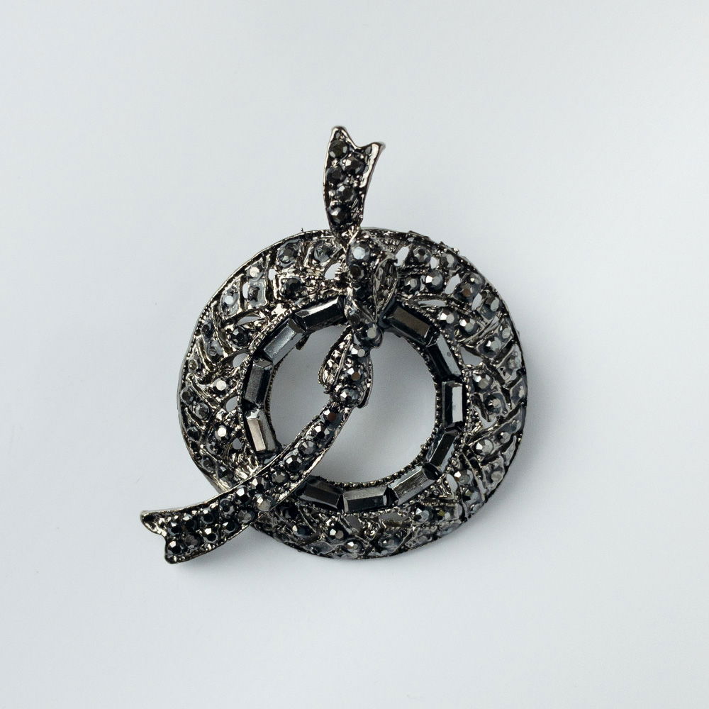 Brosa metalica rotunda cu fundita, argintiu antichizat cu pietricele gen marcasite