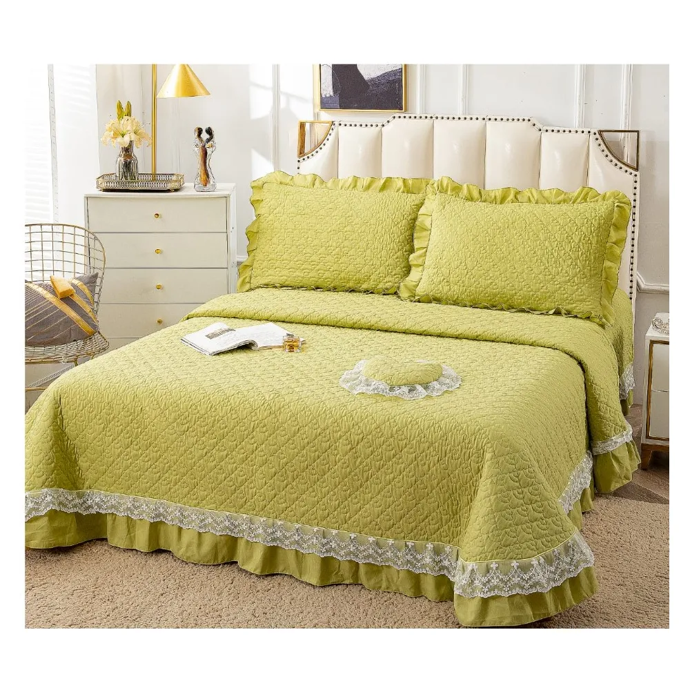 Set Cuvertura de Pat din Bumbac, 4 Piese, Verde Lime - PIT163