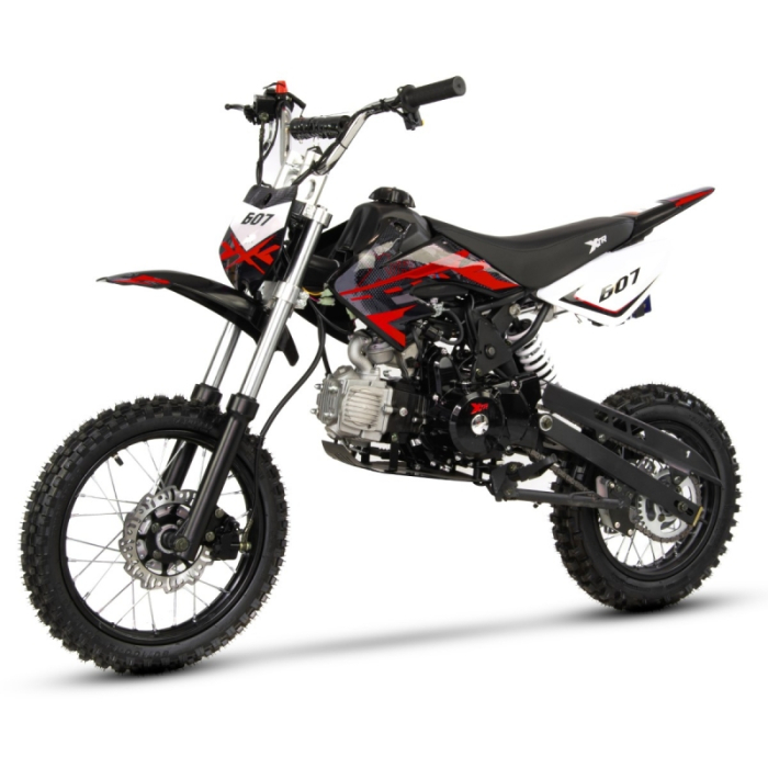 Motocicleta Cross Enduro copii 4T XTR 607M, 125cc, roti 14 12, pornire electromotor, transmisie automata, culoare negru rosu