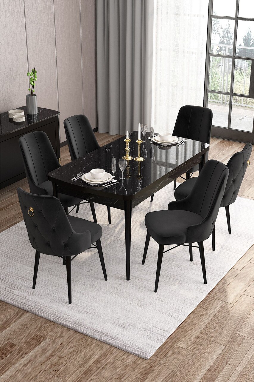 Set masa extensibila si scaune, Hanah Home, Are, Marmură neagră / Damion
