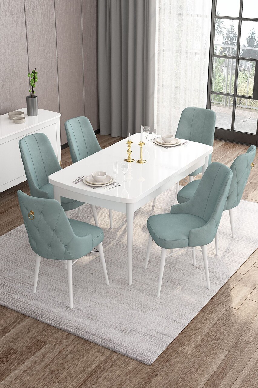 Set masa extensibila si scaune, Hanah Home, Han, Alb / Turcoaz