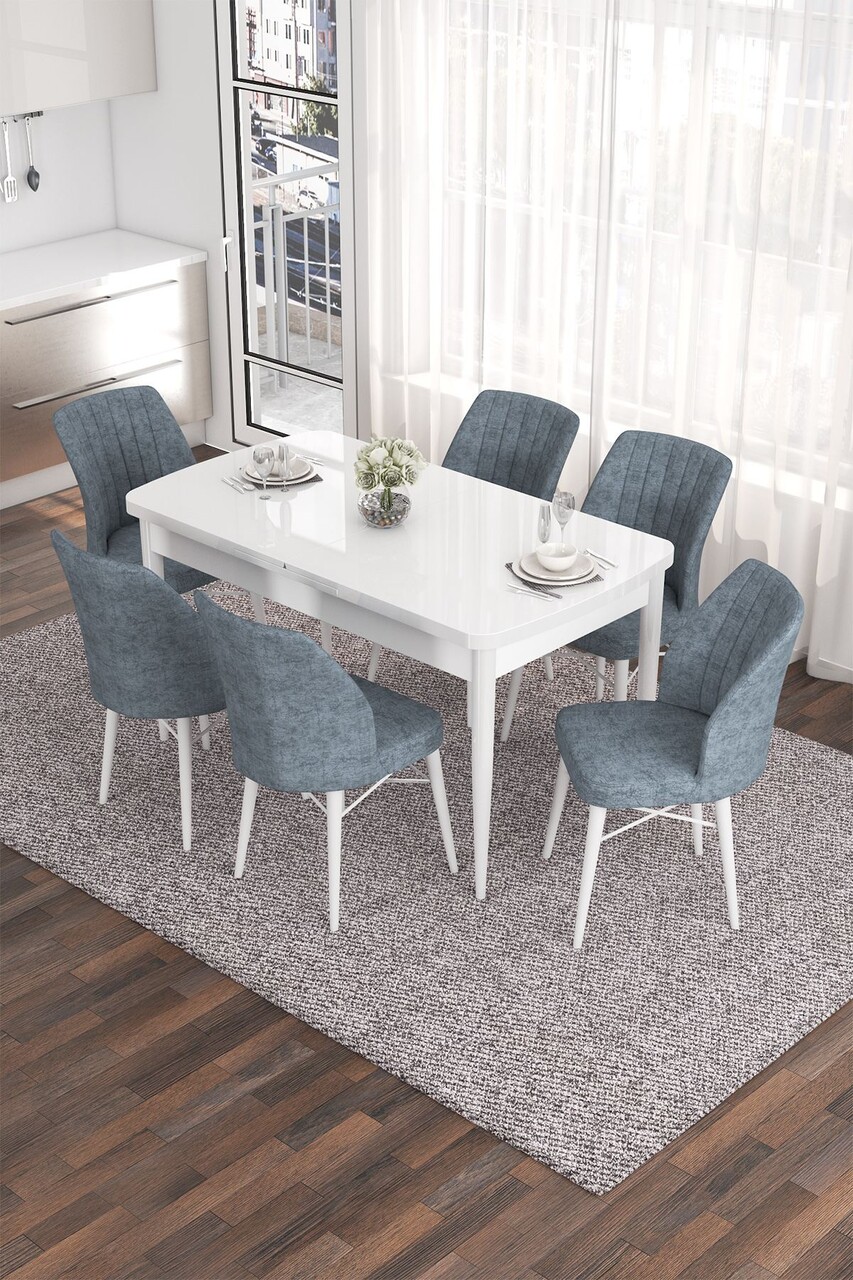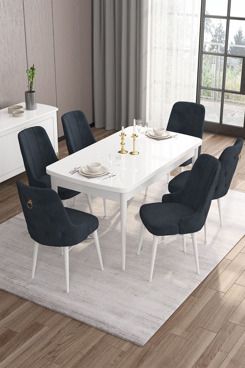 Set masa extensibila si scaune, Hanah Home, Eva, Alb / Bleumarin