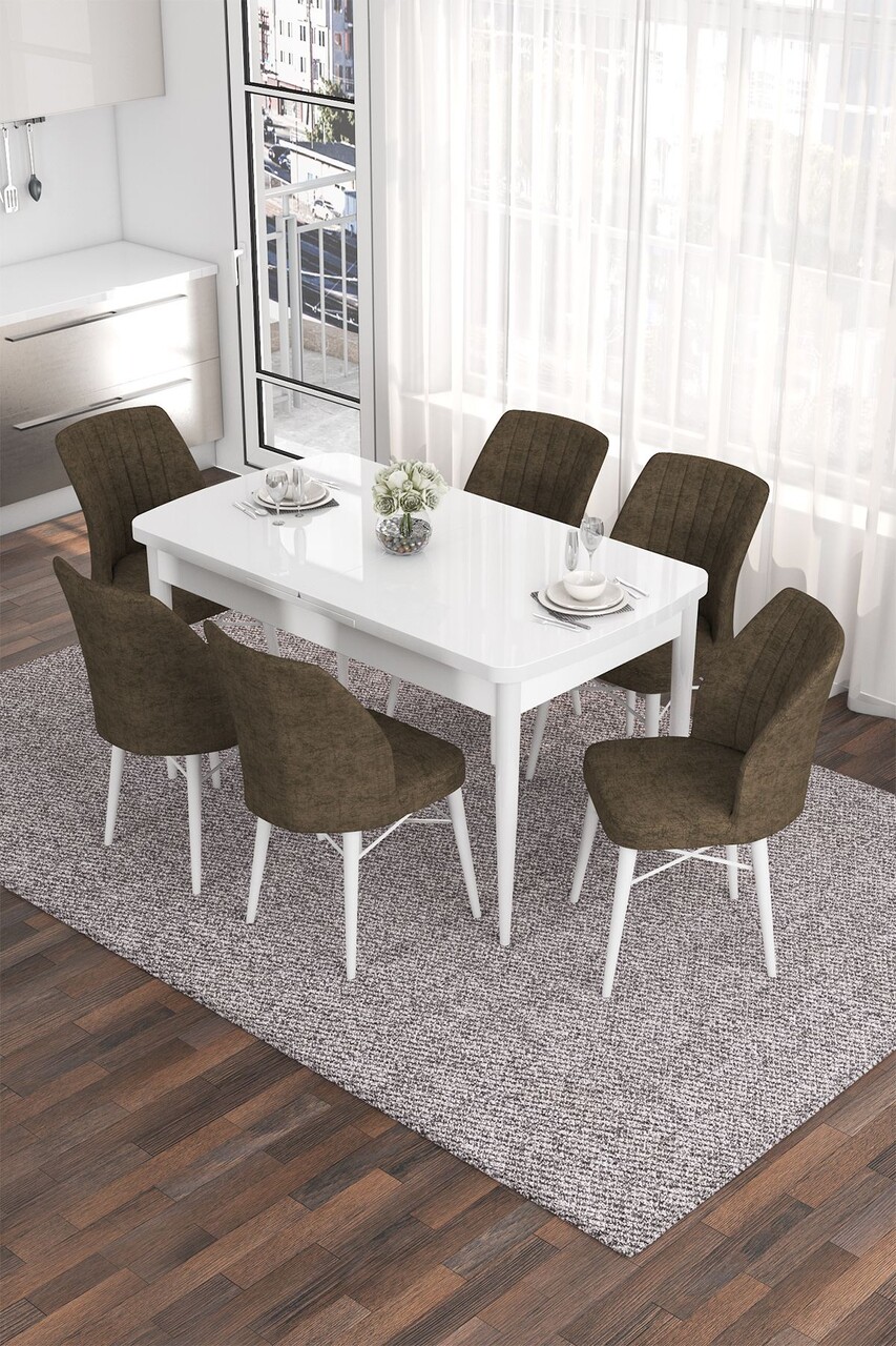 Set masa extensibila si scaune, Hanah Home, Eva, Alb / Cappuccino