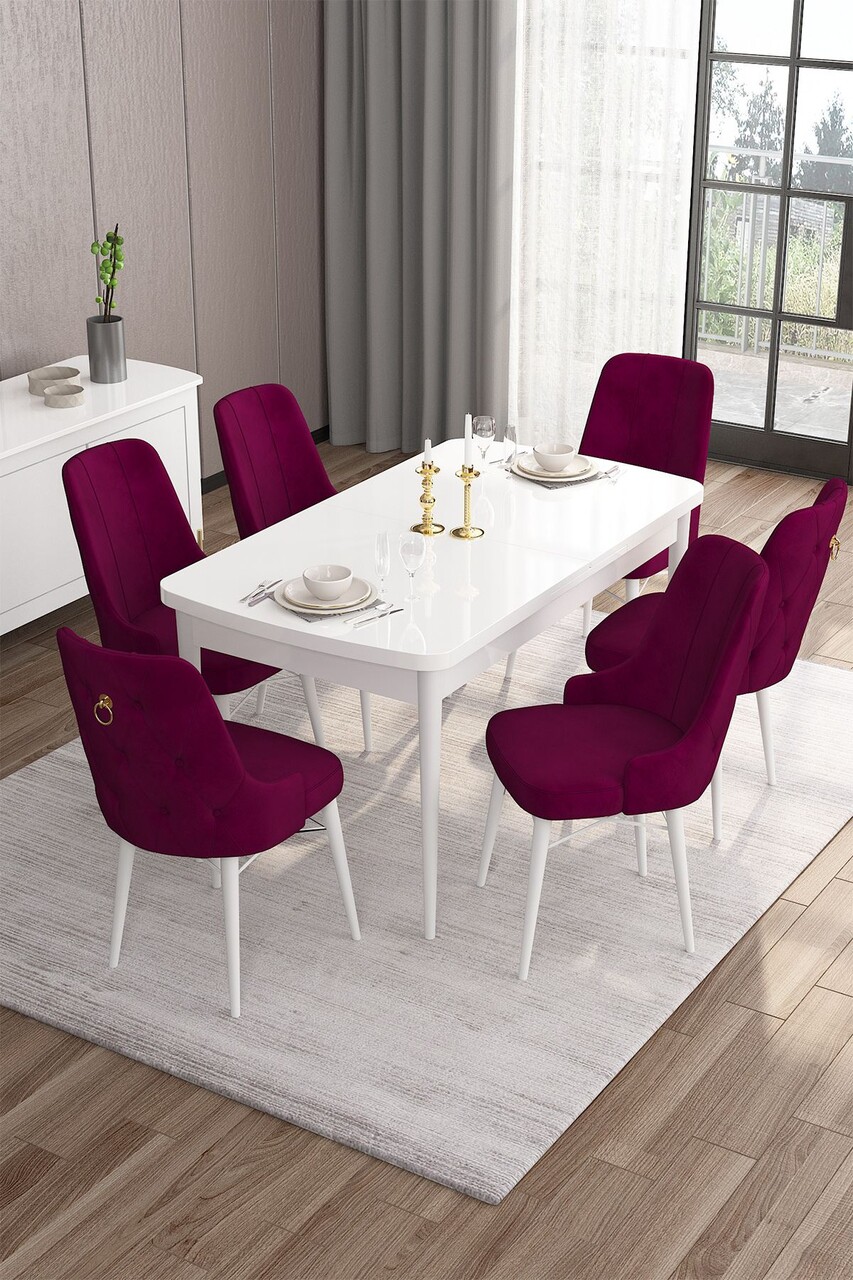 Set masa extensibila si scaune, Hanah Home, Han, Alb / Burgundia