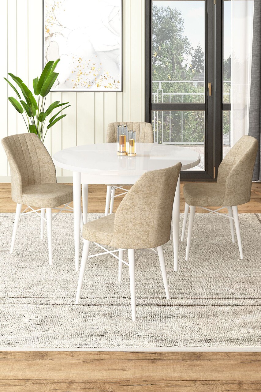Set masă și scaune (5 bucăți), Hanah Home, Arp, Alb / Crem