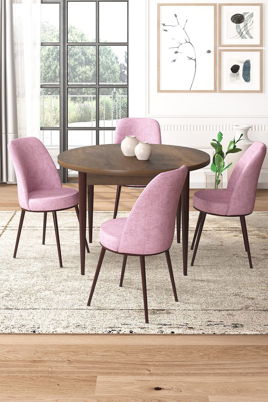 Set masă și scaune (5 bucăți), Hanah Home, Rox, Baroc / Roz Păfuit
