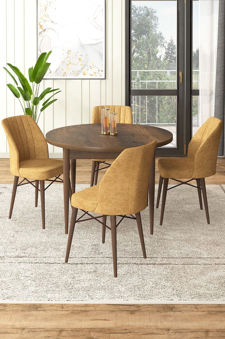 Set masă și scaune (5 bucăți), Hanah Home, Nil, Baroc / Muștar