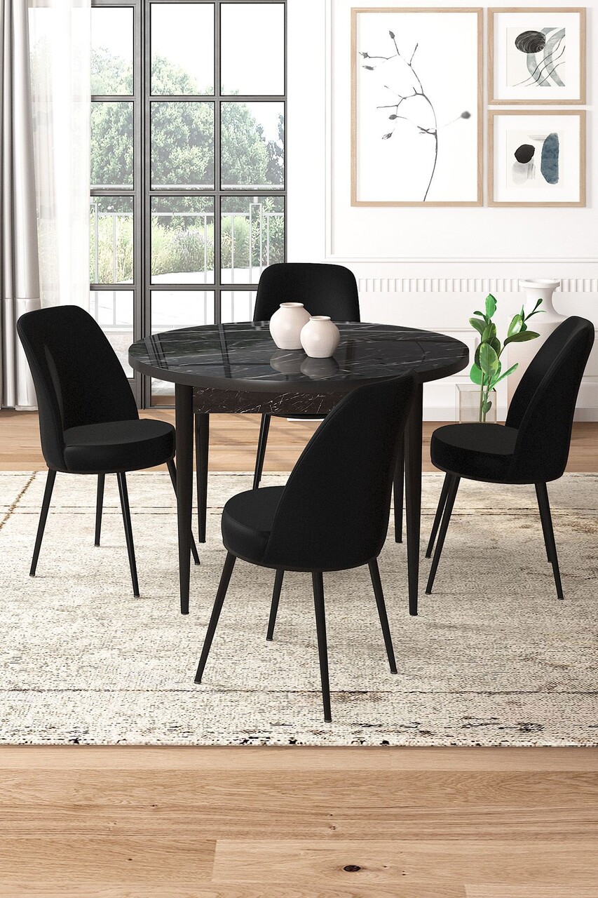 Set masă și scaune (5 bucăți), Hanah Home, Tor, Marmură neagră / Negru