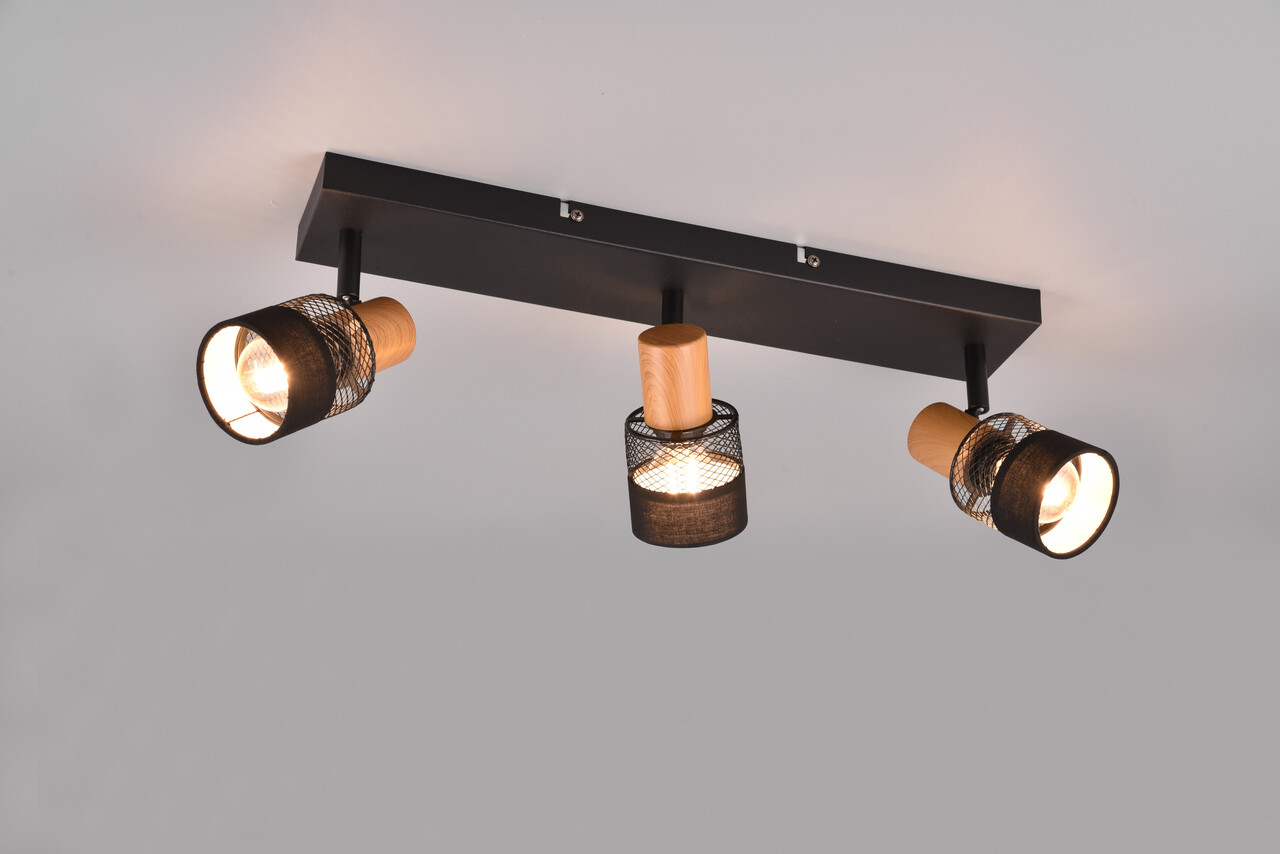 Plafoniera Nandini, TRIO, 45x8.5x17 cm, 10W, 3x E14, metal, negru mat/natur